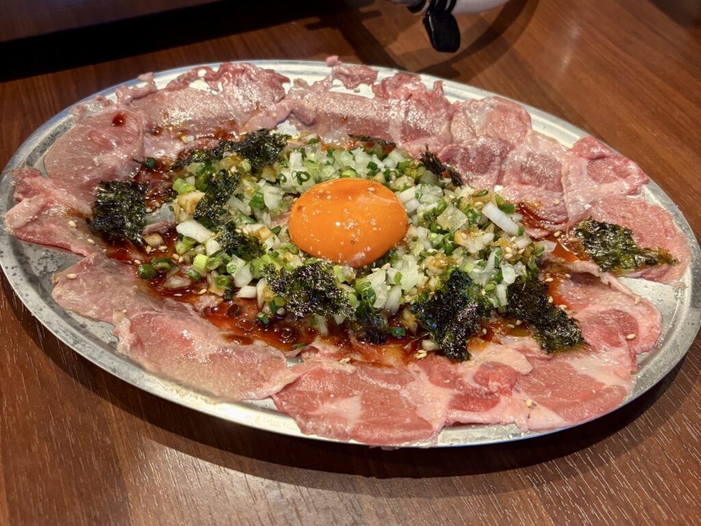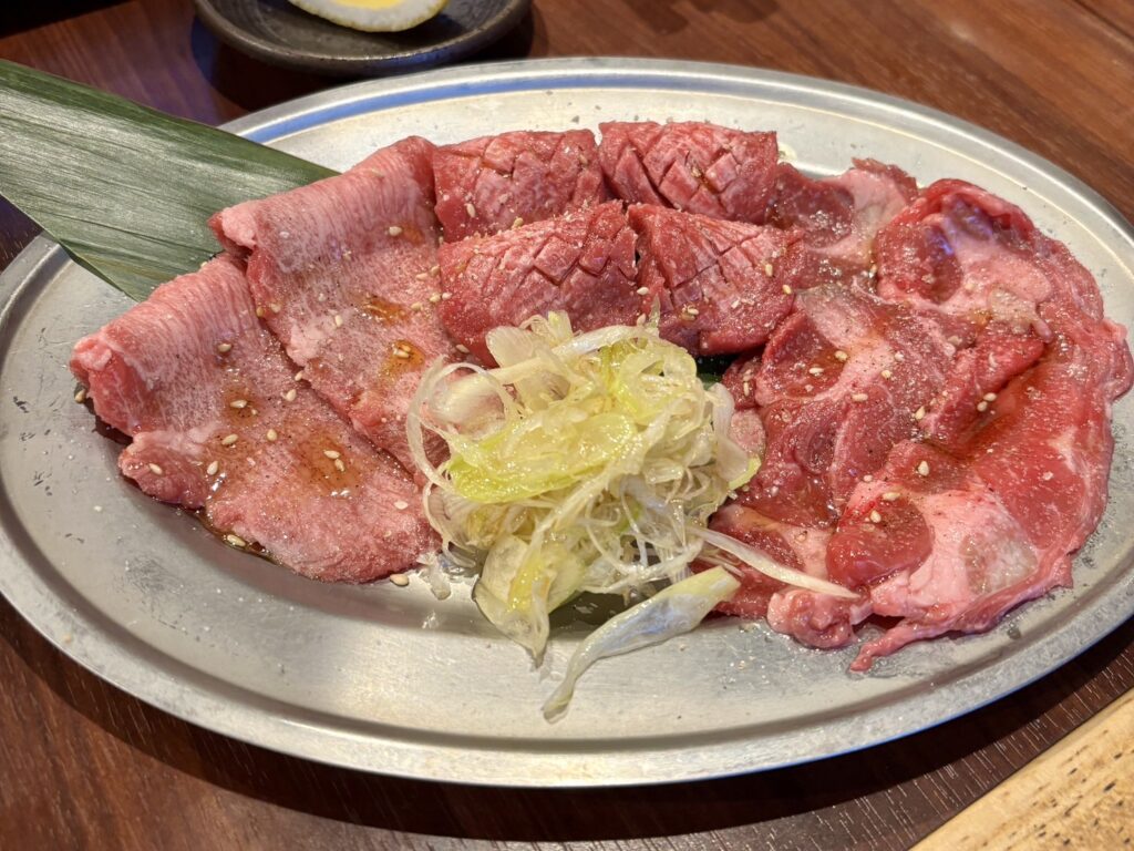 厚切りタンは噛みしめるほどに肉の繊維感が伝わり、タンカルビは脂の甘みが前に出る構成。特上タンは火を入れすぎないことで、舌の上でほどける柔らかさが際立ちます。
