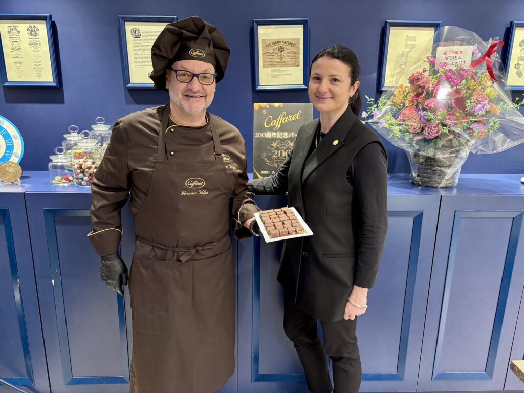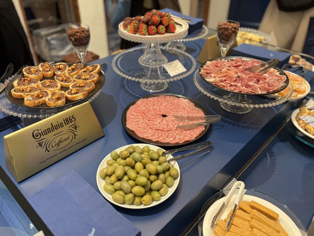 当日は、イタリア本国よりカファレルのアンバサダーシェフが来日。会場では、手作りチョコレートのふるまいをはじめ、北野本店シェフとのコラボレーションメニュー、2026年バレンタインコレクションの紹介、アペタイザーの数々が立食スタイルで提供されました。