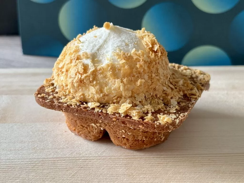季節限定のアップルゴールドは、りんごの甘酸っぱい香りと、チーズムースのまろやかさが重なる冬らしい一品。パイ生地の香ばしさがアクセントとなり、すっきりとした余韻が楽しめます。