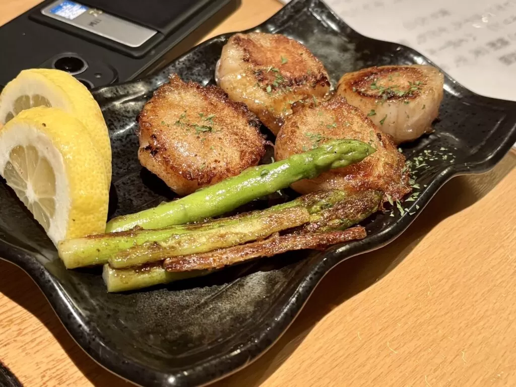 鉄板の上でじっくり焼き上げられる生ホタテは、ふっくらとした身にバターの香りが染み込み、口の中でとろけるような食感。シンプルな調理ながら、素材の良さがダイレクトに伝わる一皿。バターのコクとホタテの甘みが絶妙に絡み合い、鉄板焼きの醍醐味を感じさせる。お酒との相性も良く、前菜にもメインにも使える万能な一品。