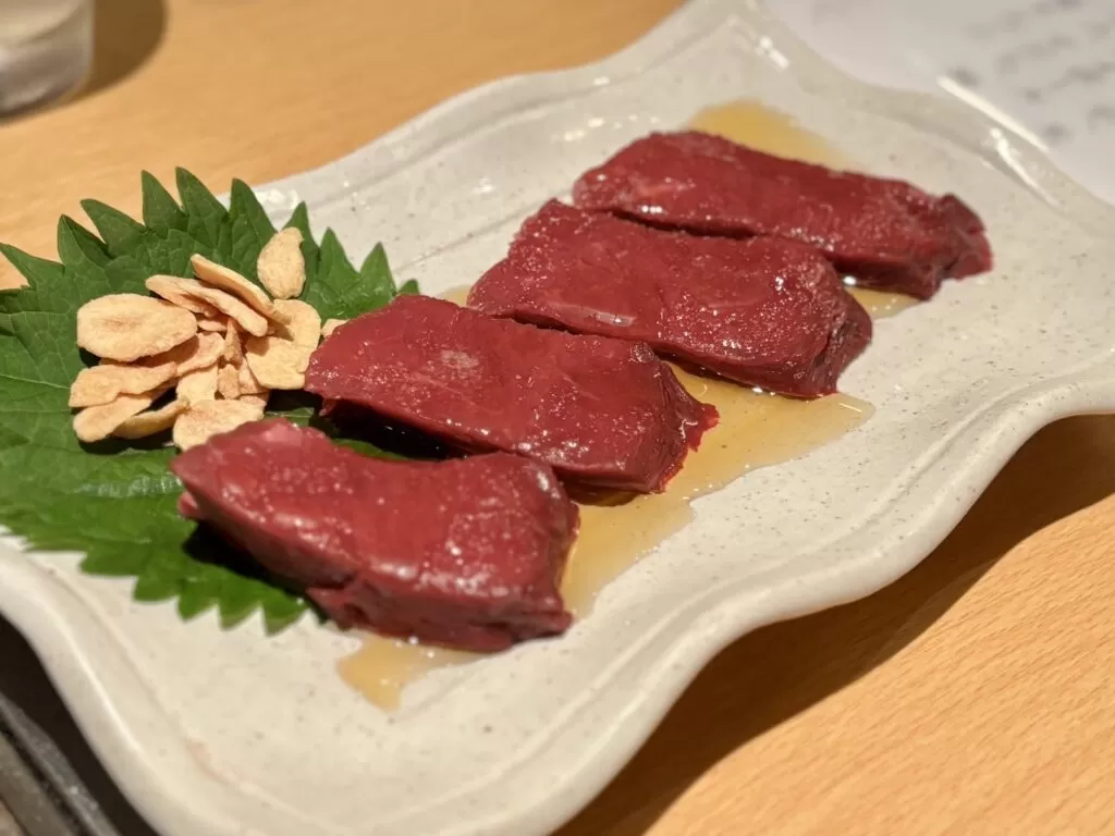 厚切りで提供される鯨ハツは、見た目にもインパクトがあり、肉厚な食感が魅力。噛みしめるほどに鯨特有の甘みとコクがじわじわと広がり、まるで上質な赤身肉を味わっているような満足感がある。鉄板で軽く炙ることで香ばしさが加わり、旨みがさらに引き立つ。レバ刺しのようなとろける質感とは異なり、しっかりとした歯ごたえと濃厚な味わいが楽しめる一皿。肉好きにはたまらない、福太郎ならではの“心”の厚みを感じる逸品。