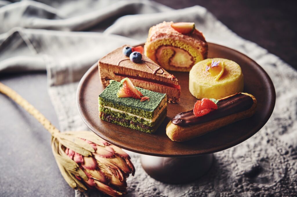 窓辺の景色と共に味わう華やかなスイーツが揃うカフェラウンジ。ベリーをアクセントにしたデザートや香り高いハーブティーが並び、冬の神戸らしい優雅なティータイムを楽しめる空間です。