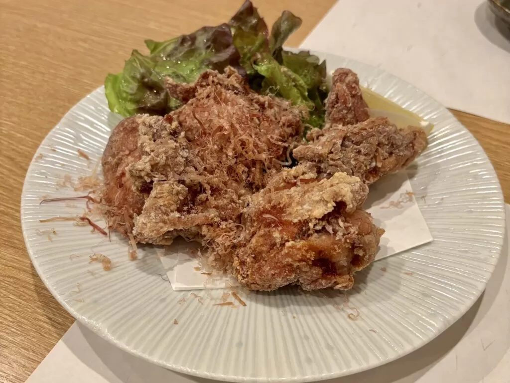 米粉衣の唐揚げはサクッと軽やかで、冷めても美味しい完成度。 水茄子やイチジクチーズ和えなどの小鉢も、素材の力を丁寧に引き出していて、どれも記憶に残る味でした。