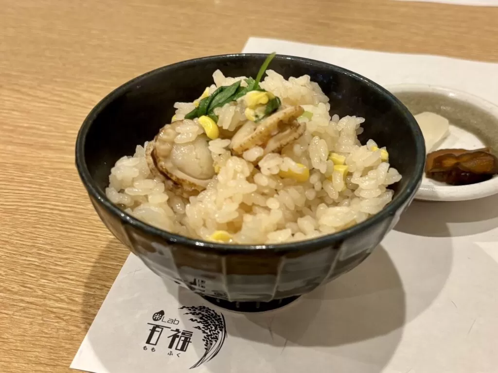 とうもろこしと帆立の一合は、具材の旨みが米に染み渡り、食べ進めるほどに満足感が増していく贅沢な一杯。 香り・食感・余韻まで、五感で味わえる米料理の魅力を実感しました。