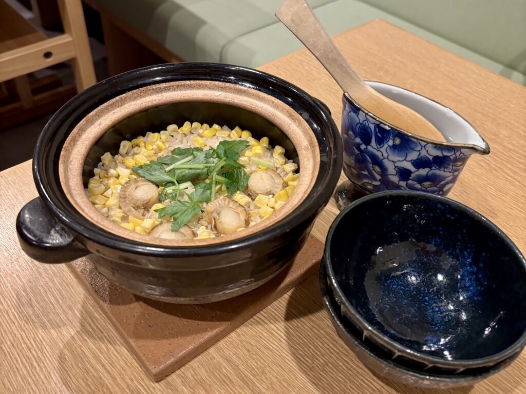 とうもろこしと帆立の一合は、具材の旨みが米に染み渡り、食べ進めるほどに満足感が増していく贅沢な一杯。 香り・食感・余韻まで、五感で味わえる米料理の魅力を実感しました。