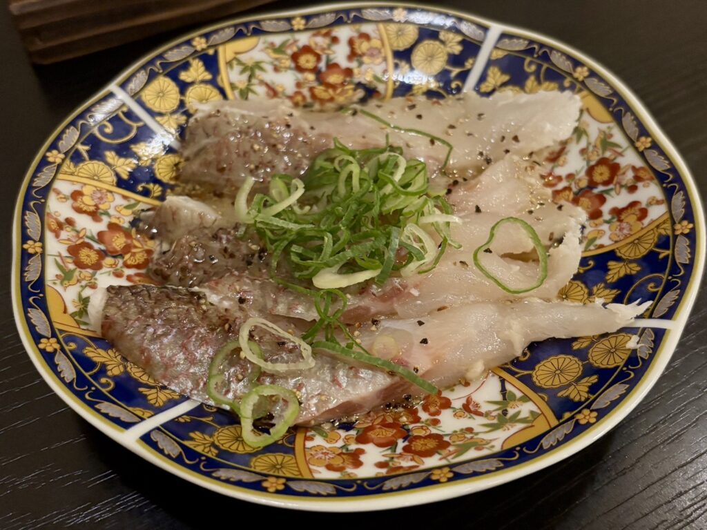 次に登場したのは、宿毛湾のブランドブリ「荒木さん家のブリ」の藁焼きたたき。 脂の甘みと香ばしさが口の中でとろける贅沢な味わいで、鮮度の高さが際立ちます。