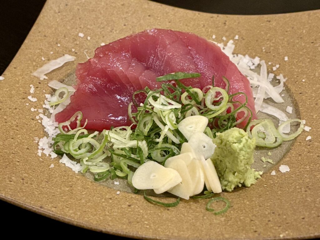 愛媛・愛南町から直送されたカツオは、日帰りならではの鮮度と弾力が魅力。 藁焼きとは異なる、素材本来の味を楽しめる一品です。