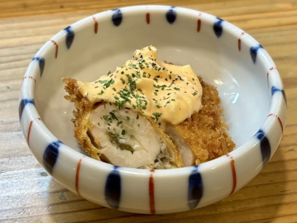 続く小鉢「北海道産牡蠣フライ」は、衣の軽さと中のとろみが絶妙なバランス。サクッとした食感のあとに、牡蠣の濃厚な旨みが口いっぱいに広がる。火入れの技術が光る一品で、北海道産ならではの豊かな味わいが感じられる。前菜ながらも満足度が高く、日本酒との相性も抜群。鮨への期待をさらに高める、序盤のハイライト。