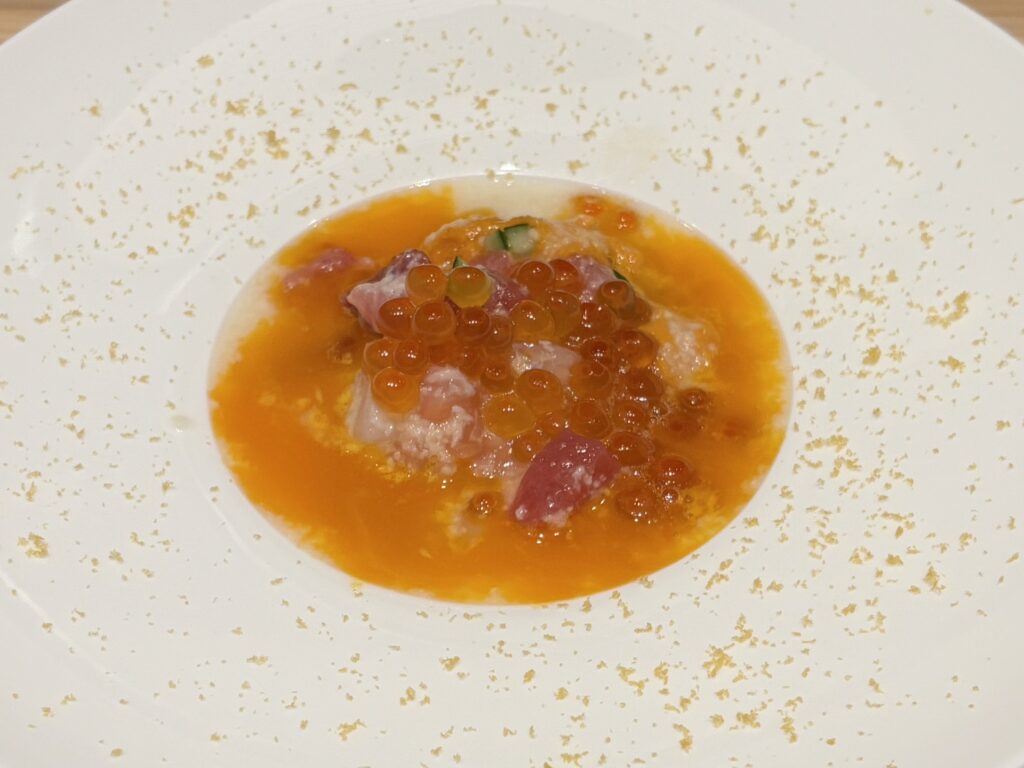 長芋ソースのとろみと鮮魚の旨みが融合し、カラスミの濃厚な塩味が全体を引き締める絶妙なバランス。