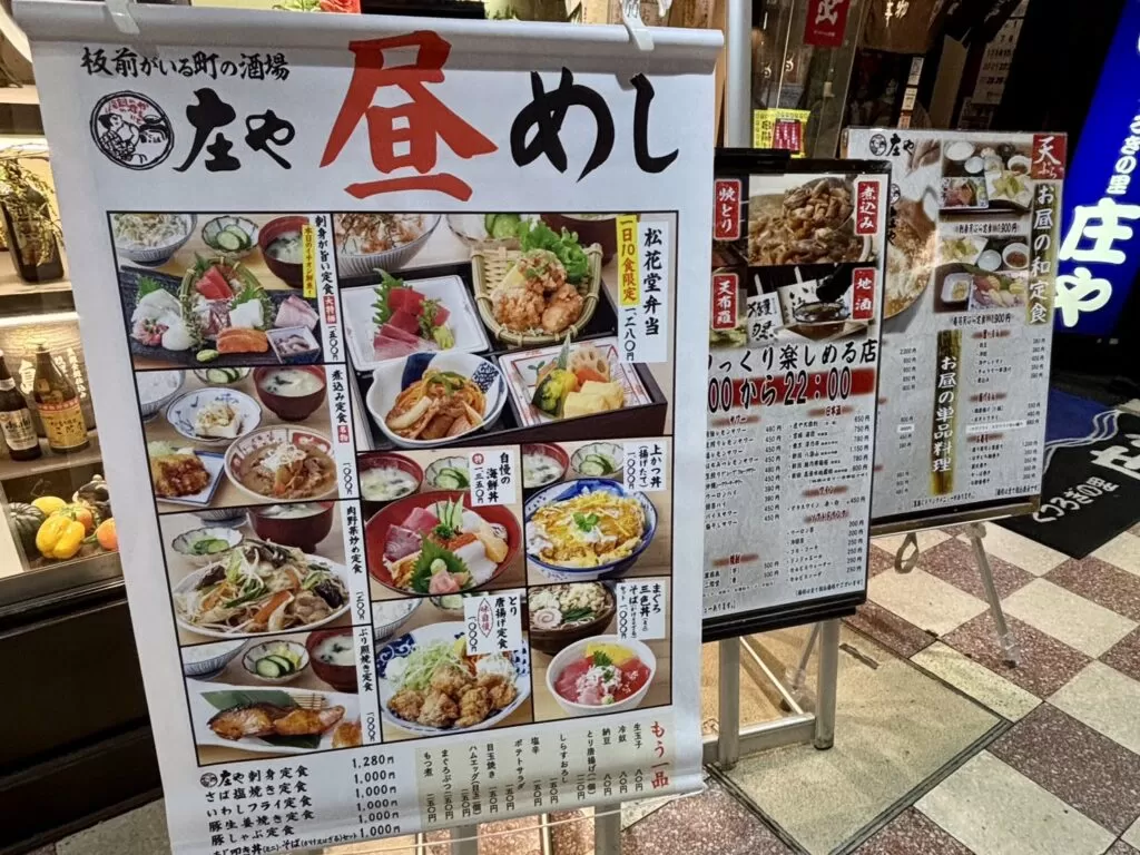 新大阪駅構内に店を構える 板前がいる町の酒場 庄や 新大阪店 は、創業50年の歴史を持つ大衆酒場。駅直結の利便性に加え、昼は定食、夜は一杯と使い分けできる懐の深さが支持を集めています。
