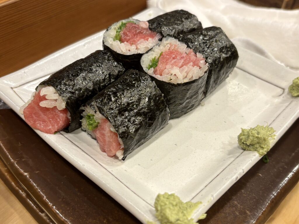 中トロの細巻きは、脂の旨味がしっかり広がる“贅沢な締め”の一本。口に広がる濃厚な旨さを、シャリが絶妙な温度で受け止めることで、全体がバランスよくまとまる上品な余韻が楽しめます。巻物ながら満足度が高く、寿司好きにはたまらない一皿です。