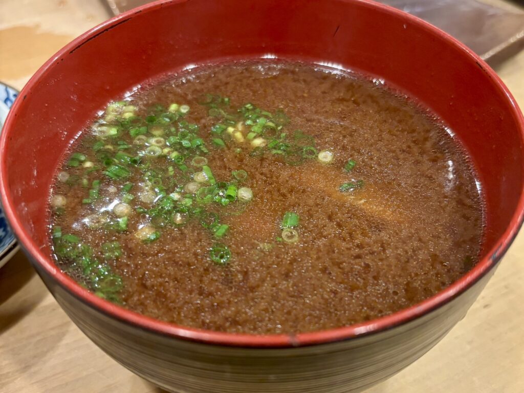赤出汁は、魚の旨味がしっかり溶け込んだ深みのある味わい。濃厚ながらもキレがあり、寿司のあとに飲むとほっと落ち着くような余韻が広がります。食事全体を優しくまとめる締めの存在として、ぜひ味わいたい一杯です。