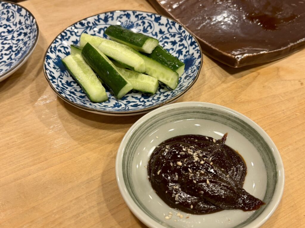 もろきゅうは、味噌のしっかりしたコクと、きゅうりの瑞々しさが絶妙なバランス。あっさりとした味わいながら、味噌の奥行きが後を引く飽きない一品です。寿司の合間に挟むことで、口の中がリセットされ全体の流れが整います。