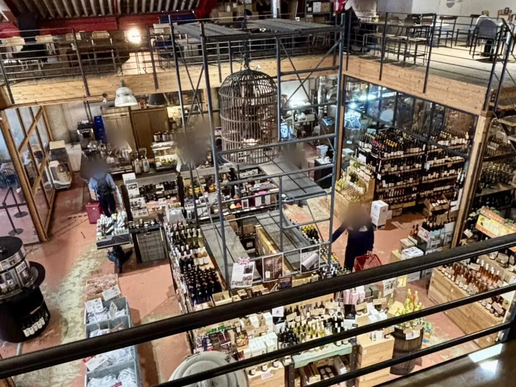 元倉庫を活かした開放的な空間。ワインとコーヒーが並ぶ店内は圧巻の眺め