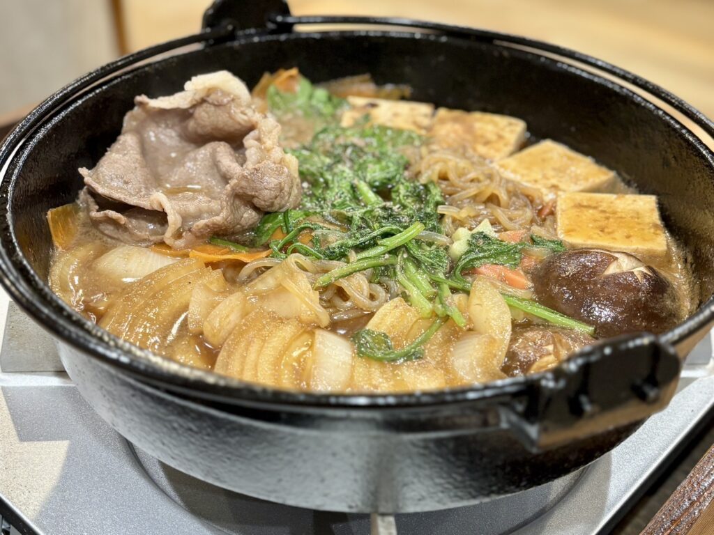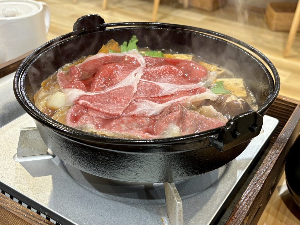 大きめの肉をさっとくぐらせ、割り下をまとわせた瞬間に香りが立ち上がります。卵にくぐらせると角が取れ、旨みが丸く広がる設計。
